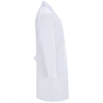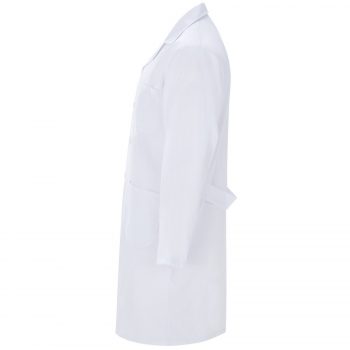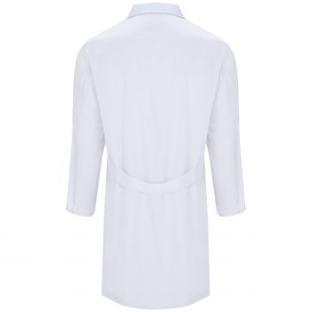 Bata de servicios Unisex de manga larga: 1. Cuello con solapa. 2. Apertura central con 5 botones a tono. 3. Un bolsillo en pecho y dos laterales. 4. Cinturilla trasera.
