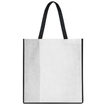 • Bolsa cosida combinada en tejido non woven (no tejido) con efecto metalizado y poliéster jaspeado. Asa larga de cinta, fuelle y ribeteado en tejido non woven de color negro. .