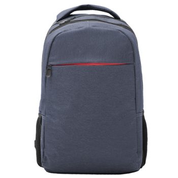 Mochila para portátil en tejido jaspeado. 1. Doble asa reforzada para hombro y asa especial de mano. 2. Dos bolsillos centrales. 3. Bolsillo frontal con cremallera a contraste. 4. Bolsillos laterales de rejilla.