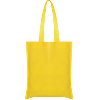 Bolsa termosellada sin fuelle, fabricada en tejido non woven (no tejido), con asa larga de cinta en el mismo color.