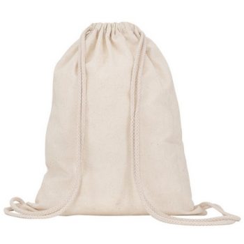 Mochila multiusos de algodón. Cordones de ajuste a la espalda a tono, de 8 mm de grosor.