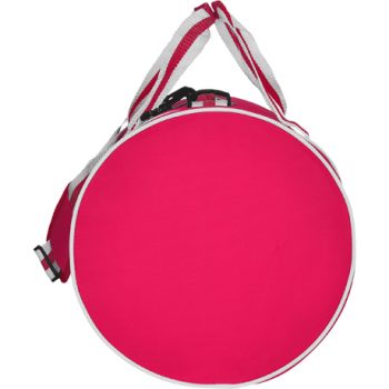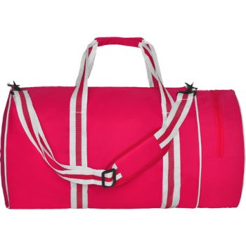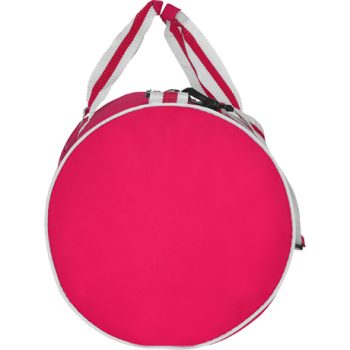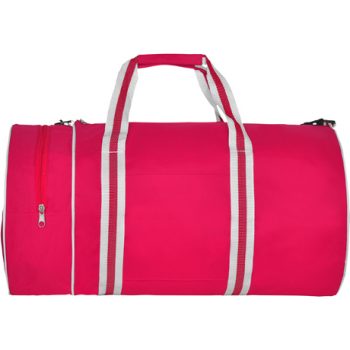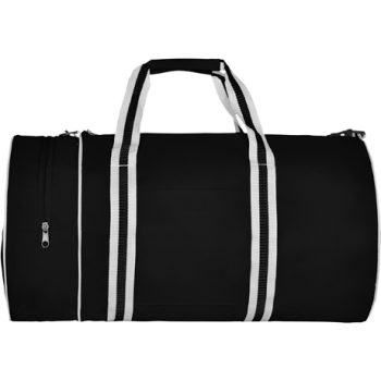 • Bolsa de diseño cilíndrico, elaborada en poliéster con asas de nylon. Bolsillo lateral con cremallera.
