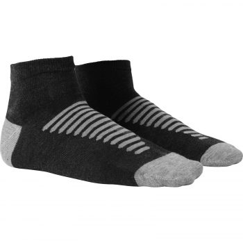 Calcetín combinado, transpirable y cómodo. Color combinado en puntera, talón y dibujo de rayas sobre el empeine. Altura de tobillo. Perfecto para deporte.