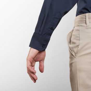 Camisa de manga larga, cuello clásico almidonado de 1 botón y bolsillo frontal izquierdo. Tapeta con 7 botones a tono. Bajo con forma. Cuidado fácil.
