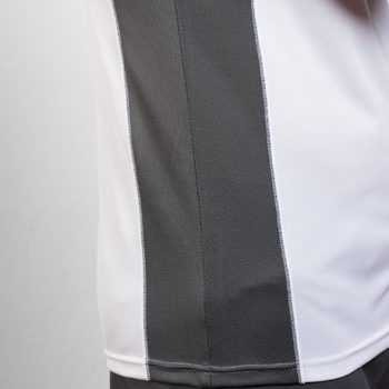 La tecnicidad llevada a un poco más allá. La camiseta de manga corta Shangai, combina dos tejidos de poliéster: uno con tejido nido de abeja y otro microperforado.