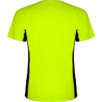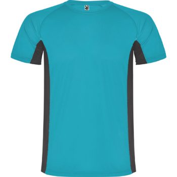 Camiseta técnica combinada con dos tejidos de poliéster, manga corta de estilo ranglan. Tejido principal bird´s eye y paneles laterales e interior de la manga con tejido microperforado. Cuello redondo con cubrecosturas de refuerzo en su interior. Camiseta de tejido confortable y fácilmente adaptable al cuerpo.