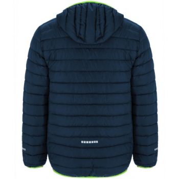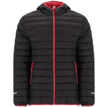 Chaqueta deportiva acolchada con relleno tacto pluma. 1. Cremallera frontal invertida a contraste con protector de barbilla y tirador. 2. Capucha ajustada fija. 3. Bolsillos laterales a contraste con cremallera invertida y tirador. 4. Detalles reflectantes en mangas y espalda. 5. Patronaje del bajo 4 cm más largo que el modelo NORWAY. 6. Capucha, puños y bajos con ribete elástico a contraste. 7. Incluye bolsa de transporte.
