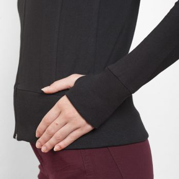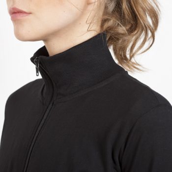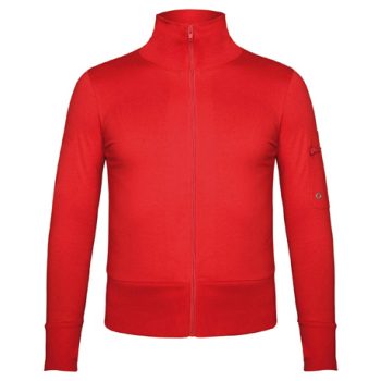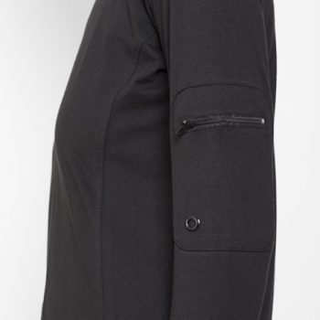 Chaqueta casual de cuello alto con cremallera central al tono del tejido. Cuello, puños y cintura ancha de punto canalé. Bolsillo en la parte superior de la manga con cremallera y salida de dispositivo móvil. Cubrecosturas de refuerzo en el interior del cuello. Costuras de costadillo lateral y puño con agujero lateral para dedo.