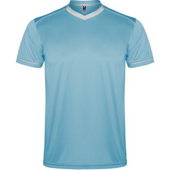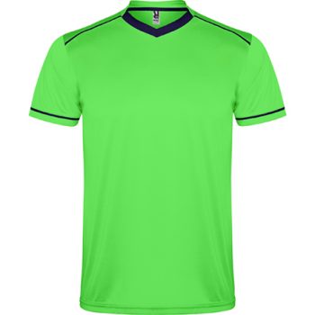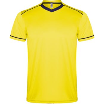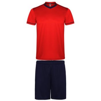 Conjunto deportivo unisex compuesto de 2 camisetas + 1 pantalón. 1.- Manga corta con vivo ancho en contraste. 2.- El color de la segunda camiseta se compone de manera contraria. 3.- Cuello redondo con ribete bicolor y con cubrecosturas reforzado en su interior. 4.- Pantalón con cinturilla elástica con cordón interior al tono con pespunte de seguridad.
