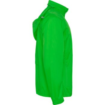 Chaqueta cortavientos en tejido técnico. 1.- Cuello con bolsillo para guardar capucha. 2.- Tejido transpirable en la parte de las sisas. 3.- Corte de mangas ranglan. 4.- Doble bolsillo en la parte delantera con cremallera. 5.- Apertura y cierre con cremallera frontal. 6.- Bolsillo en la espalda para guardar la chaqueta a modo de bolsa. 7.- Bajo de chaqueta y puños de mangas con elástico. 8.- Adorno en forma de asa situada en la parte de la espalda en la zona del cuello para poder colgar la prenda. 9.- Capucha con ajustadores plásticos y cordón elástico. 10.- Tejido transpirable en el interior del cuello. 11.- Tejido transpirable en el bolsillo interior espalda.