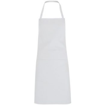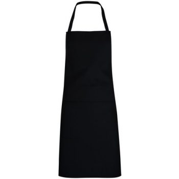 Delantal largo con cinta a tono en cuello y cintas laterales para lazada.