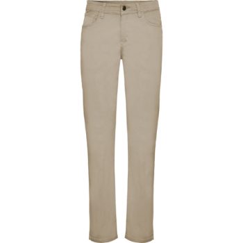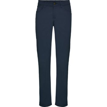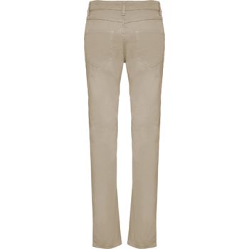 Pantalón largo de mujer, con tejido confortable y resistente. 1.- Dos bolsillos delanteros. Sobre el derecho, además, un bolsillo monedero. 2.- Dos bolsillos traseros con dibujo. 3.- Trabillas para el cinturón. 4.- Detalle de canesú, emulando a los pantalones vaqueros.