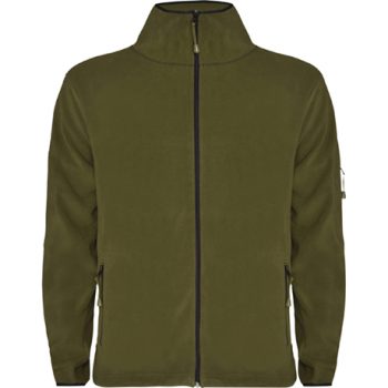 Chaqueta estilo polar para deporte al aire libre, con cuello alto y manga larga con ribetes en contraste. Bolsillo con cremallera en manga izquierda y cremallera central, ambas en contraste. Costuras en lateral y de costadillo. Codera en el mismo tejido.