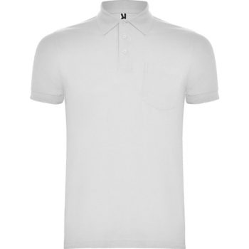 • Polo de manga corta con bolsillo en pecho izquierdo, cuello y bocamangas acanalado. Tapeta de 3 botones. Cubre costuras reforzado en cuello.