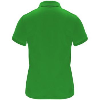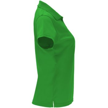 Polo técnico de manga corta para mujer. Cuello tricotosa con tapeta de tres botones. Corte entallado.