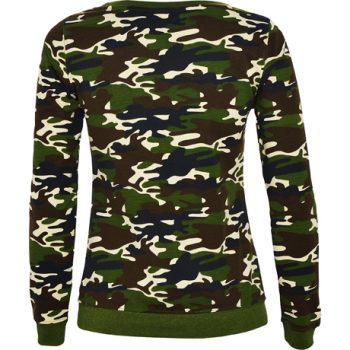 Sudadera estampado camuflaje, cuello a caja con forma redondeada y ribete de canalé. Punto de canalé 1×1 con elastano, en cintura y puños.